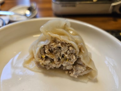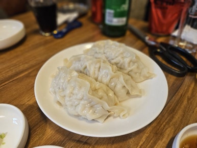 만두가 먼저 나왔는데 배가 고파서 다들 한입 컷