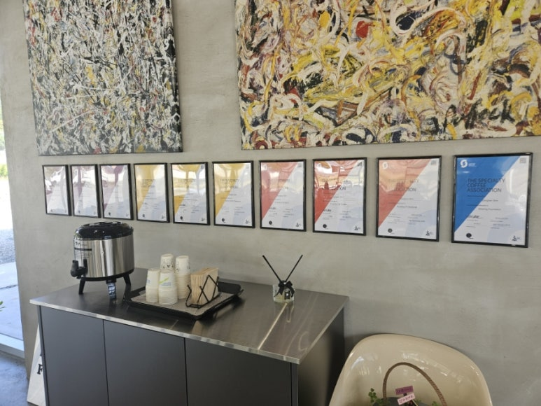 벽에 붙어있는 게 바리스타 자격증인데